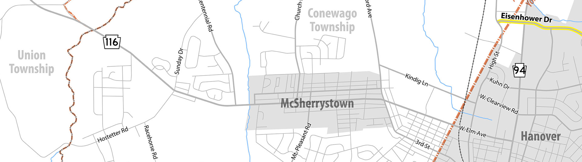 Eisenhower Drive and S.R. 116 travel corridors are the main traffic corridors through McSherrystown and Conewago Township, Adams County, and serve as a primary east-west link between Penn Township / Hanover Borough and destinations west of McSherrystown.